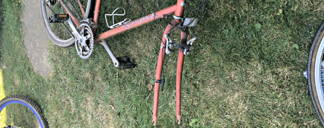 First, as we had filled both cars with junk to get here we didn’t have room to bring Daughter and Rob’s bikes. So off Rob went first thing to collect the bikes. An hour later he’s back! Two bikes ready! The other two are stored in the back shed in the garden. The route to it is so overgrown with five feet high nettles it is impossible to get to. The strimmer is stored in another shed at the other side of the garden. Locked. We can’t find the keys.
