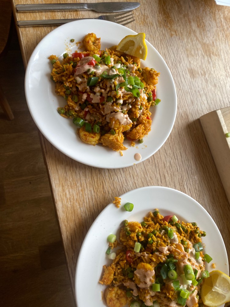 Gousto came to my rescue. They send you everything in a box and you just throw it all together. It’s got us out of a rut of spag bol/cottage pie/chops/pasta and roasts we’d got into. Check out these beauties!