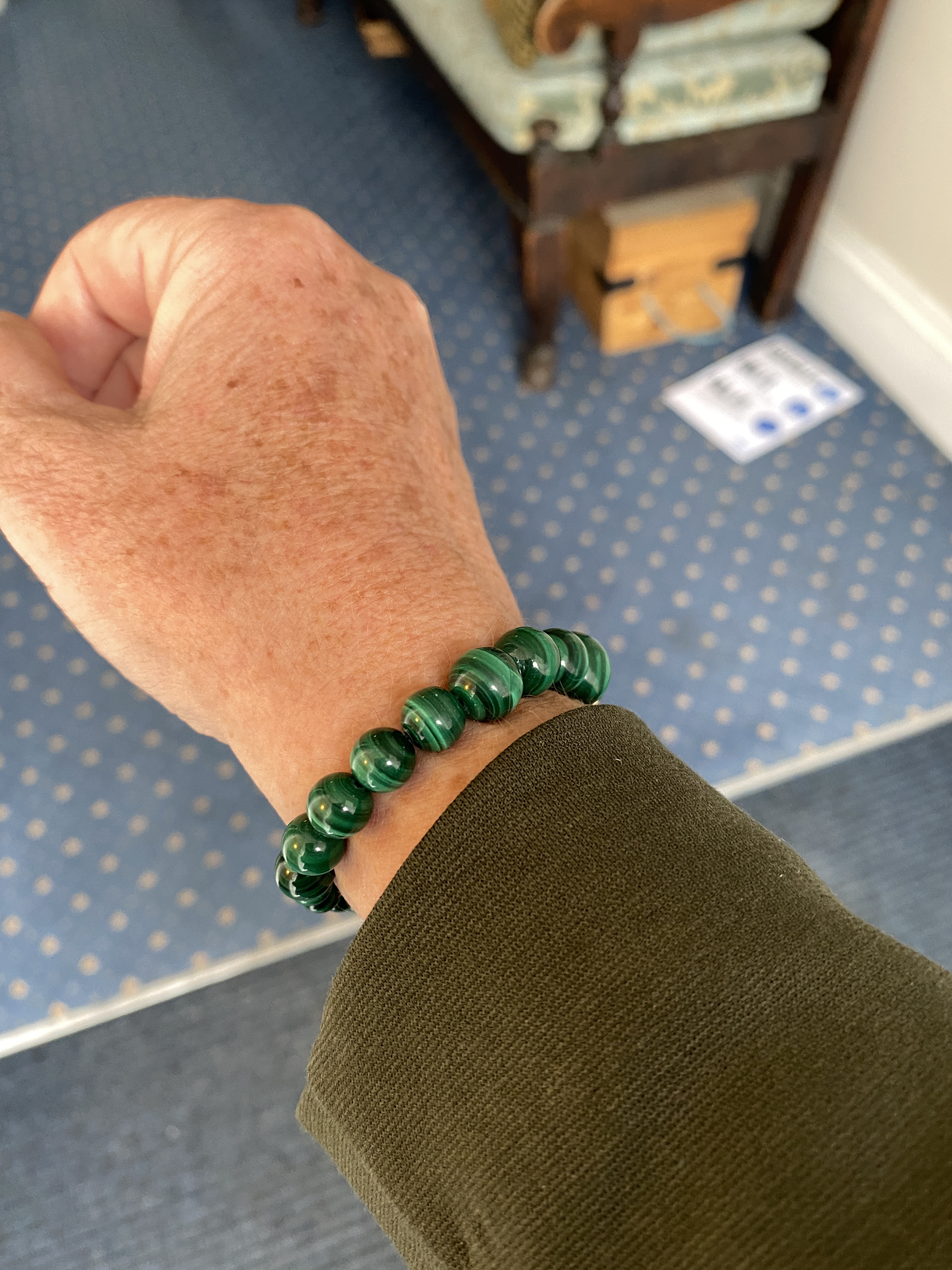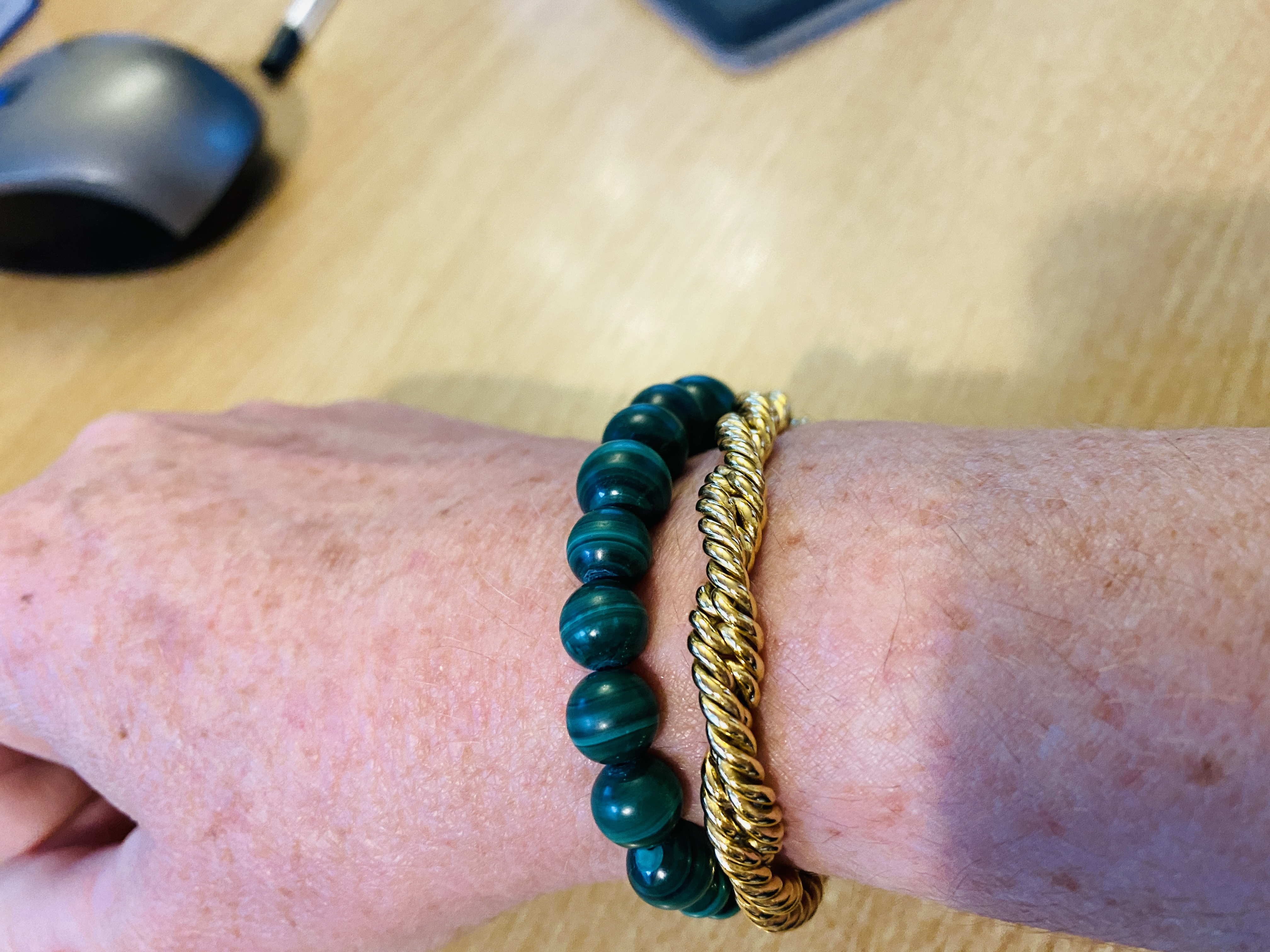 They are from Missoma and made of a gorgeous green stone called malachite. I’ve never heard of it before but it is now officially ‘my stone’ and I want lots of ‘pieces’ made from it.