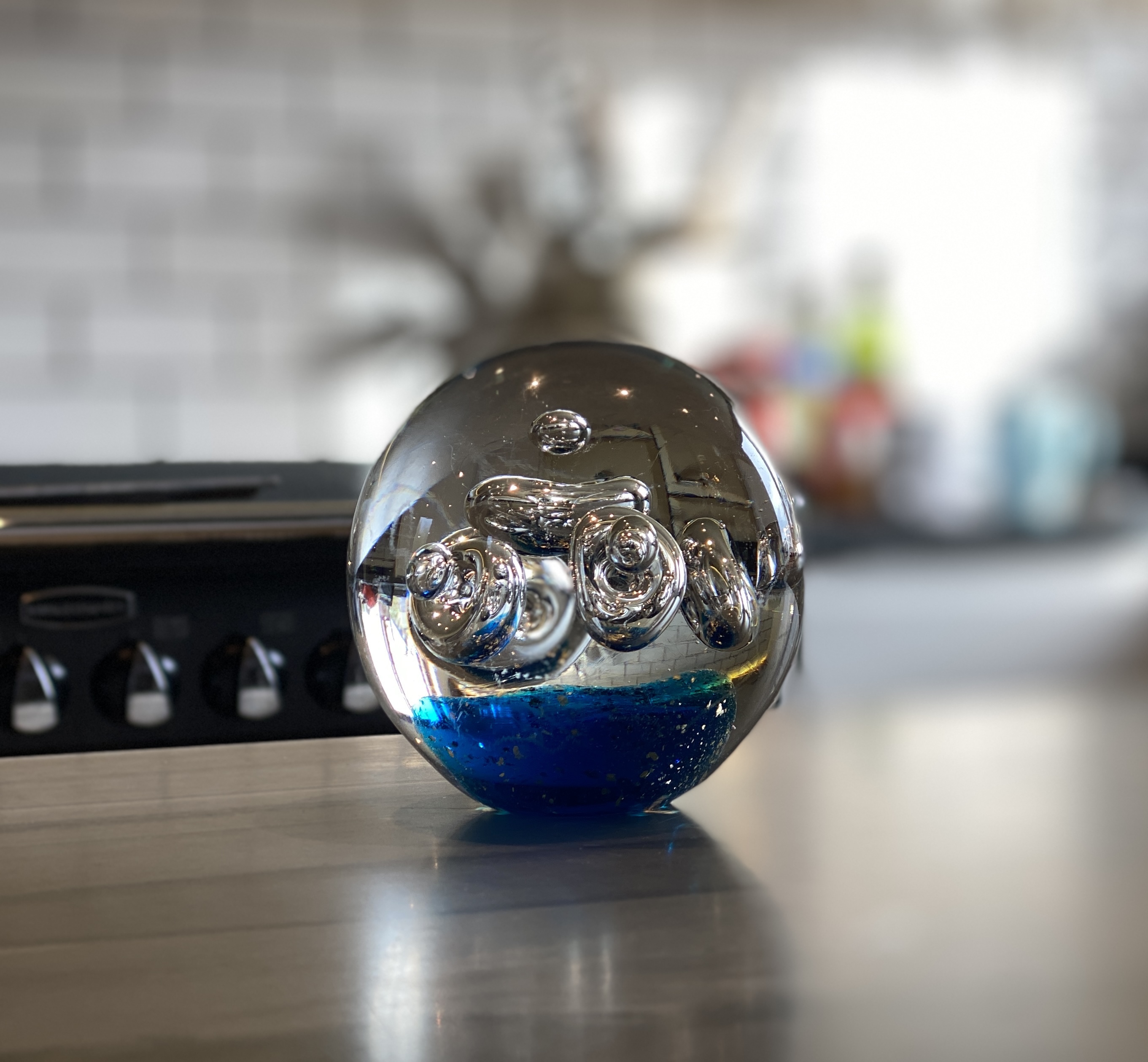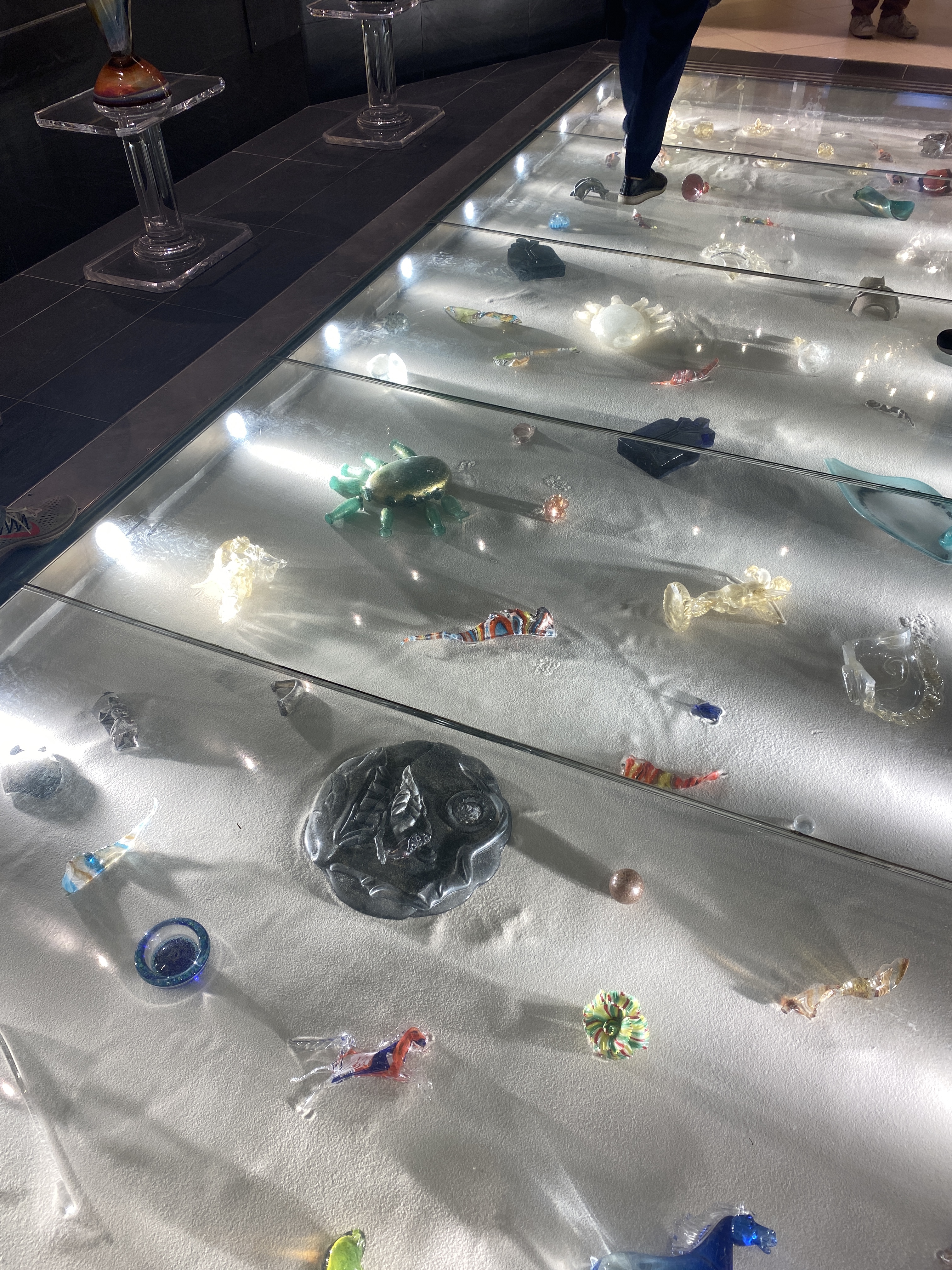 The gift shop was more suited to our pocket and I eventually found what I was looking for, a gorgeous chunk of blue and gold bubble filled glass to use as a paperweight.