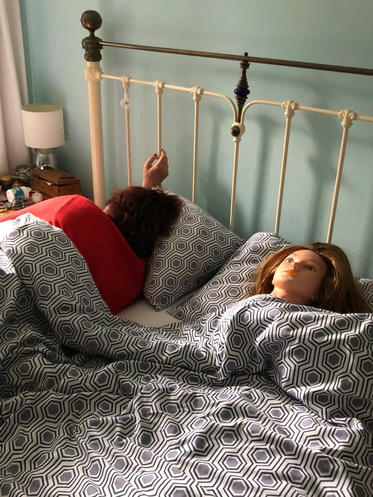 When I woke up I screamed so loudly husband thought I’d been attacked. Daughter had snuck in as I slept and left the life-size hairdresser’s head on the pillow next to me. The one we hadn’t managed to sell at the Boot Fair. Without my glasses I thought it was a decapitated head; it was like that horse head in a bed scene from The Godfather. Daughter had taken pictures and circulated them to the family chat to much hilarity. I don’t think I will every forgive her. Teenagers, eh?