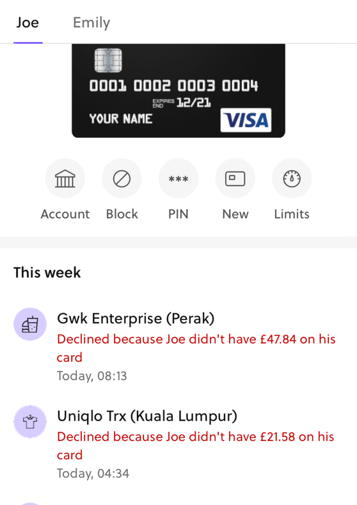 Within a day someone in MALAYSIA is using Son’s pocket money card to try and spend over £60.